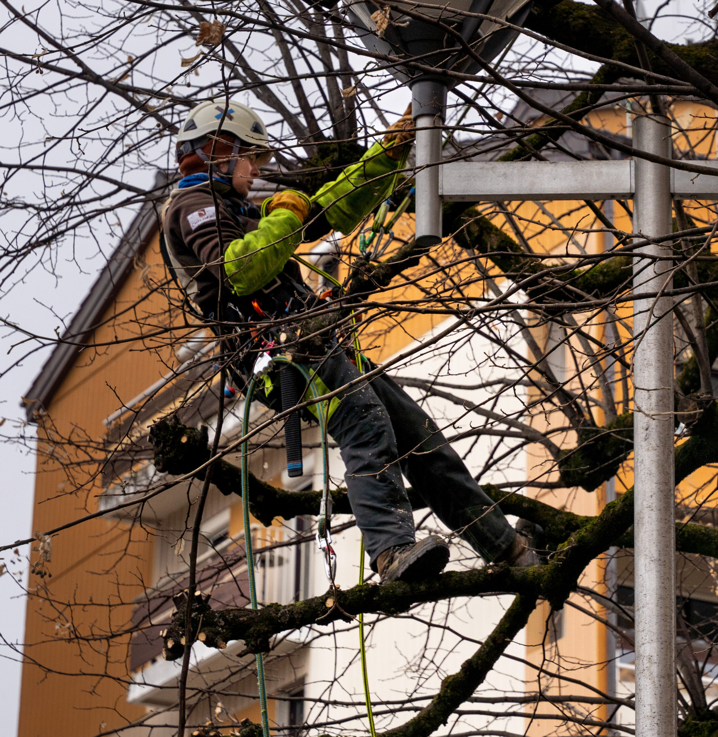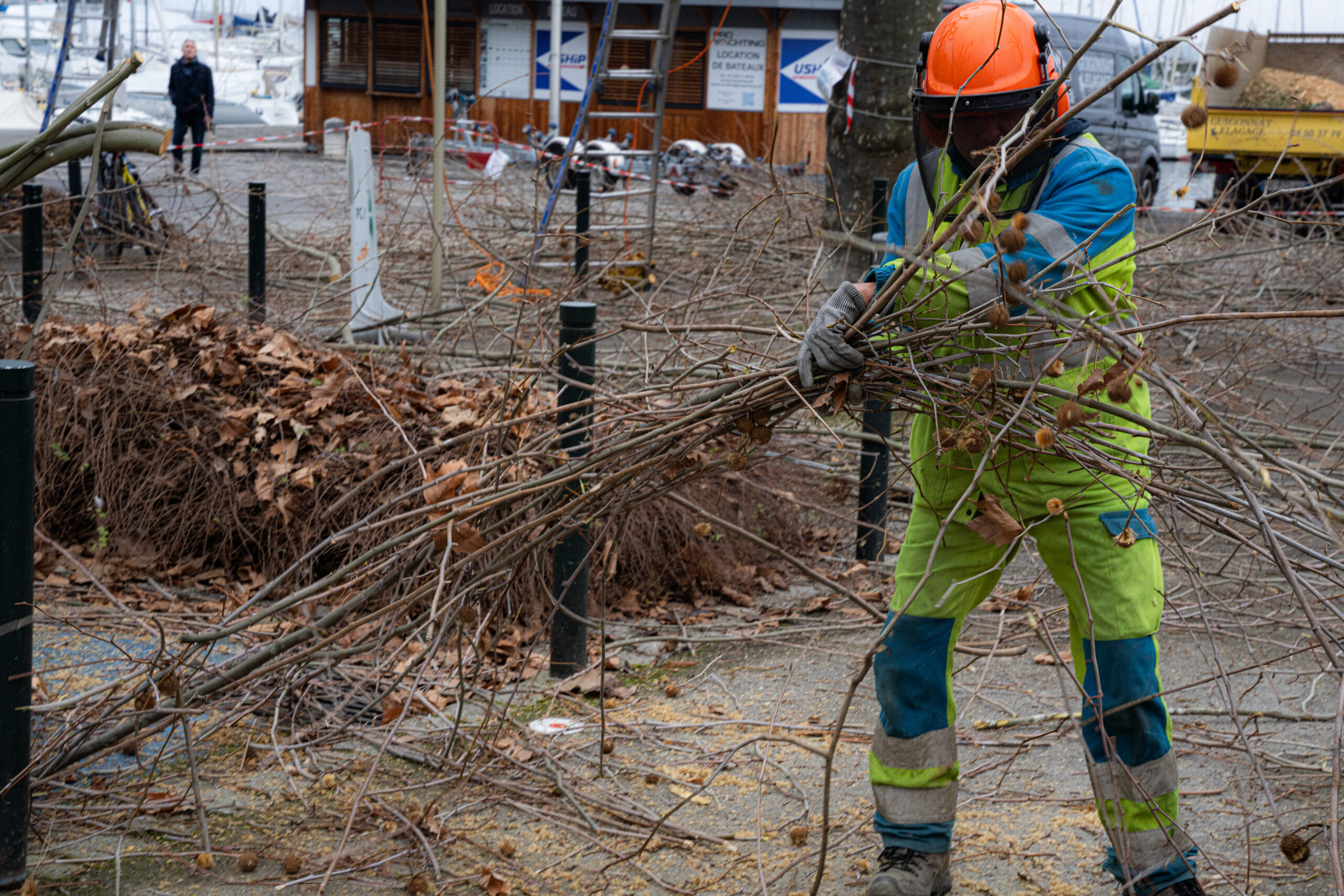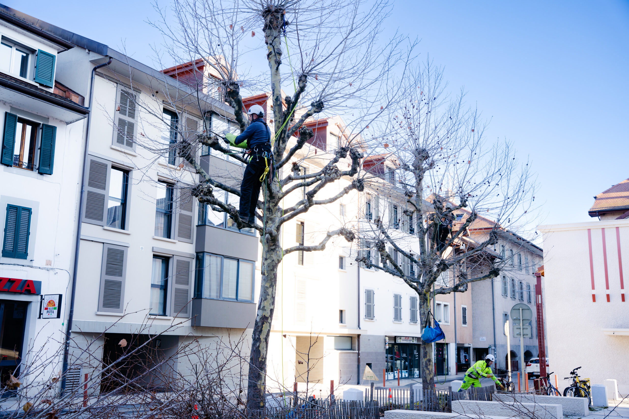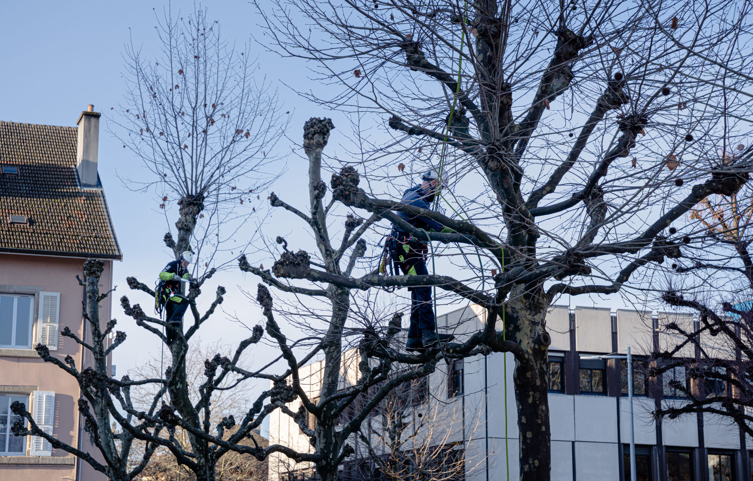 L’intervention a lieu lorsque cela est nécessaire : branches trop proches des bâtiments, bois mort, risques pour les usagers ou manque de visibilité. Dans les parcs ou les espaces plus libres, les arbres sont en revanche laissés au maximum dans leur forme naturelle, sauf en cas de danger avéré (branche fragilisée après une tempête, par exemple).