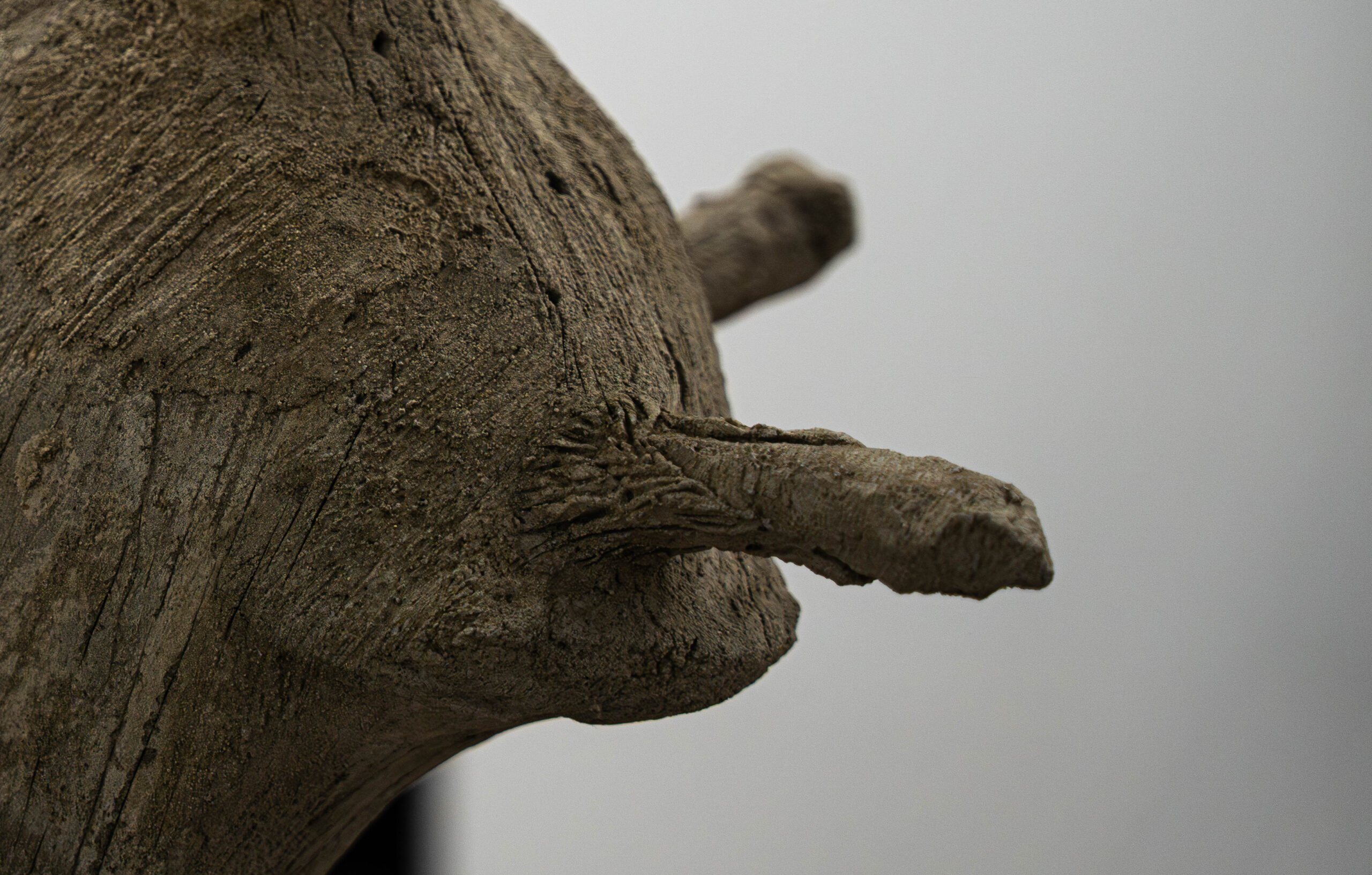 Qu’elles soient taillées dans le bois ou façonnées en rocaille, les sculptures de l’artiste semblent toujours prises dans une même matière, comme extraites d’un seul bloc. Plus que la précision anatomique, c’est la forme générale qui prime, donnant naissance à une galerie non pas d’hommes illustres, mais d’animaux illustres.