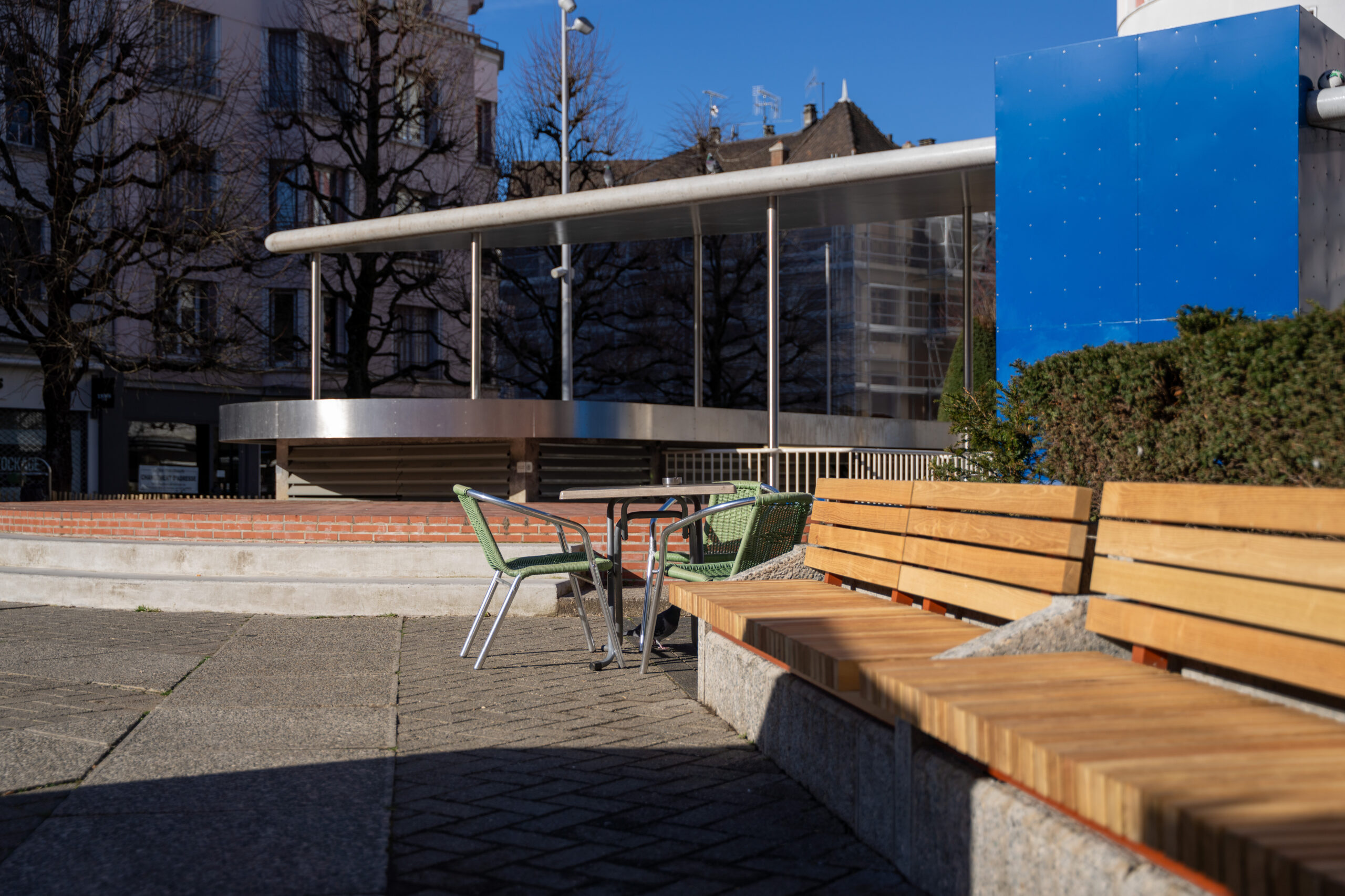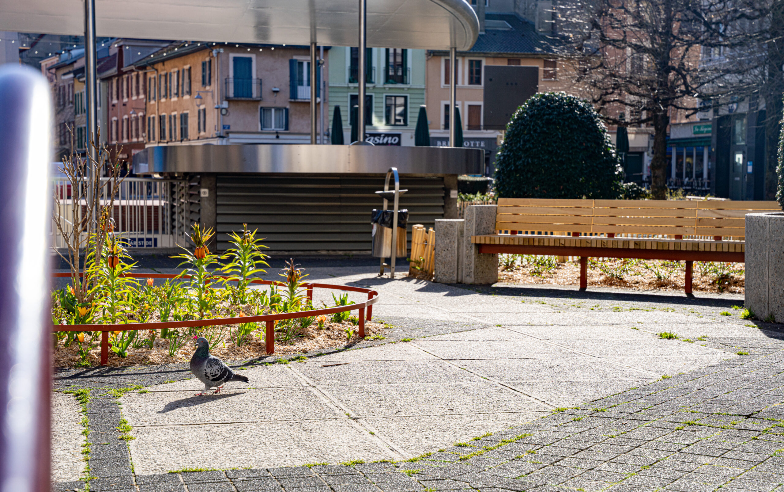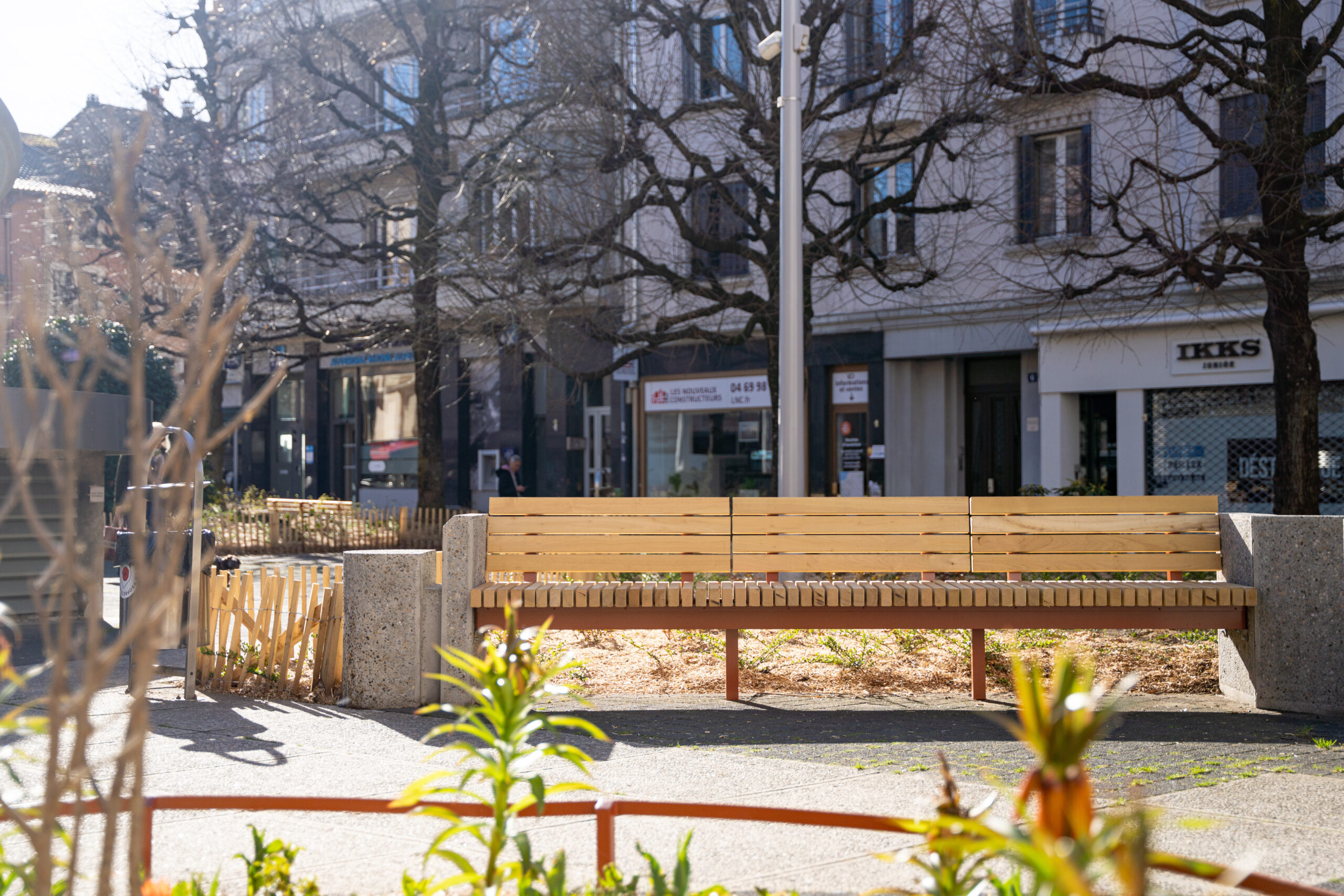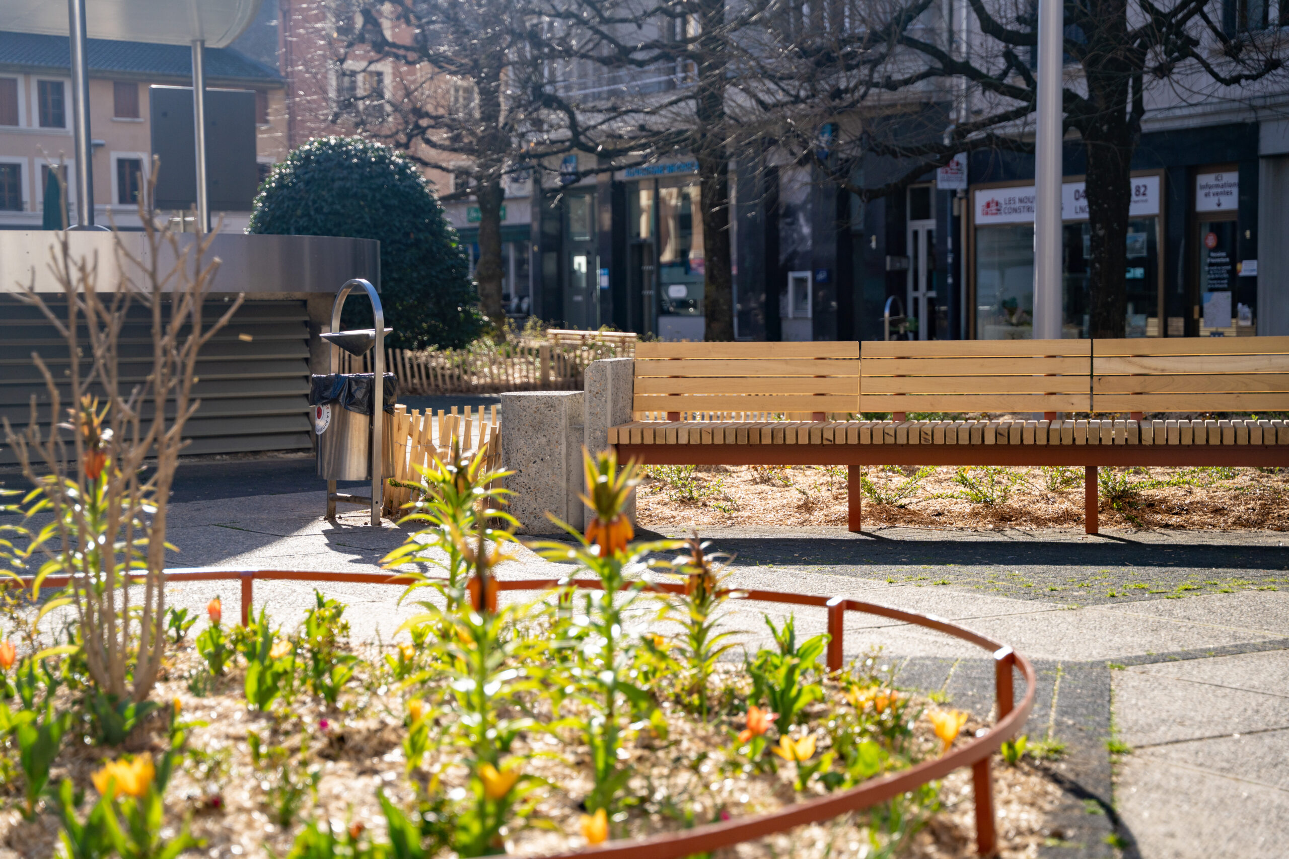 Les anciens mobiliers urbains, devenus vétustes, ont été entièrement remplacés. De nouveaux bancs publics, réalisés sur mesure, ont été installés afin de s’intégrer harmonieusement dans les espaces existants. Leur design reprend la typologie de ceux déjà présents sur la place Henry-Bordeaux, assurant ainsi une cohérence esthétique dans les espaces publics du centre-ville.