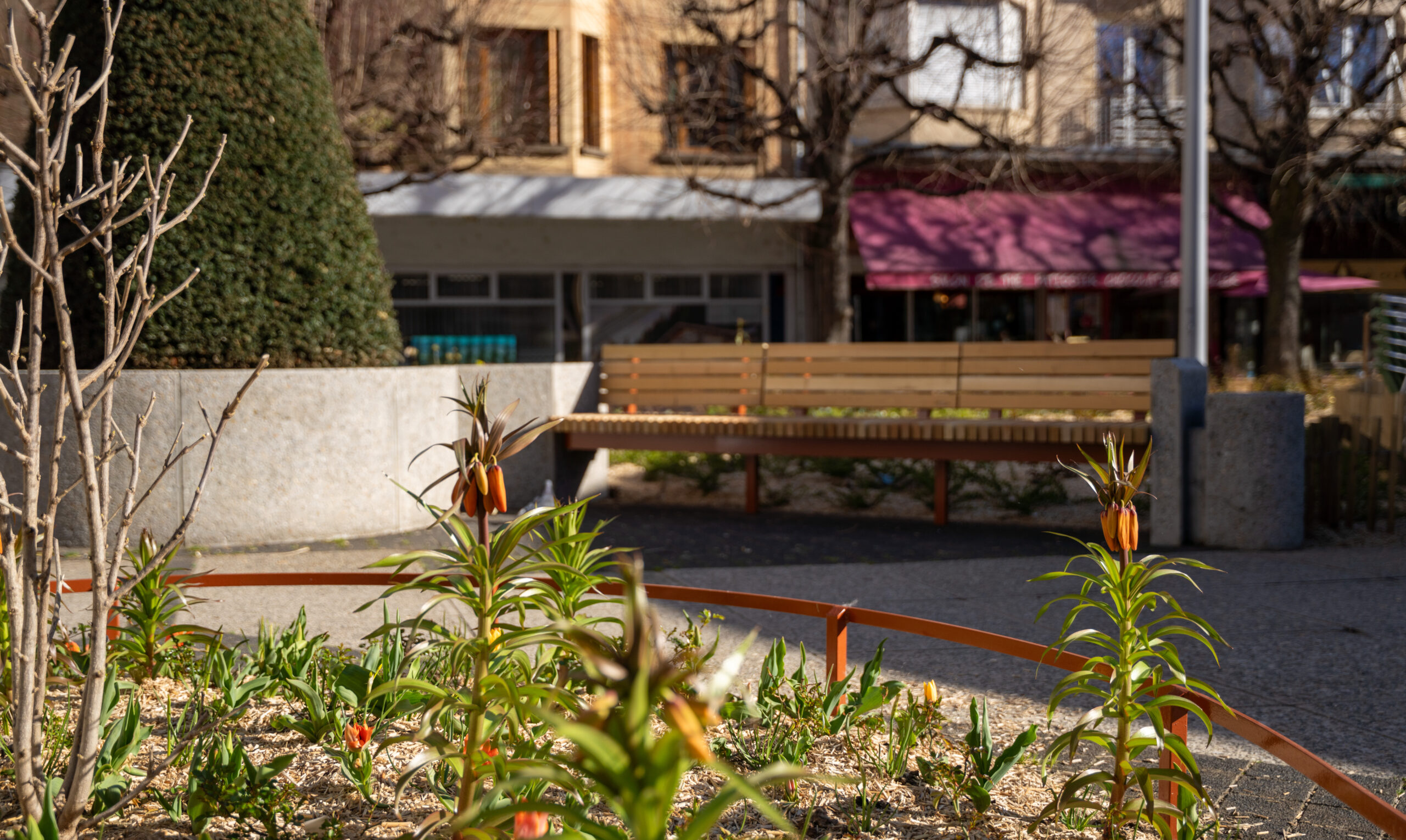 Les espaces verts du square ont eux aussi fait l’objet d’une attention particulière. Ils ont été reconditionnés et enrichis de plantes vivaces à l’esprit champêtre ainsi que d’arbustes grimpants et fleuris qui évolueront au fil des saisons. Les arbres existants, intégralement préservés, continueront de structurer le square et d’offrir une ombre appréciée lors des périodes de chaleur.