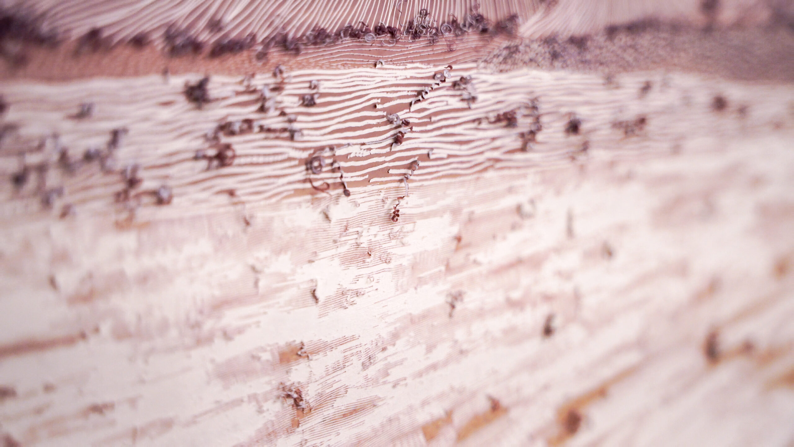 Avec patience et précision, elle retire délicatement des couches de papier ou d’encre, creusant la surface de l’image pour faire apparaître ce qui se cache dessous. Ce travail minutieux redonne de la profondeur à la photo : les reliefs, les textures, les ombres et la lumière reprennent vie. En grattant la surface, Raphaëlle fait littéralement ressortir la nature qu’elle a photographiée.