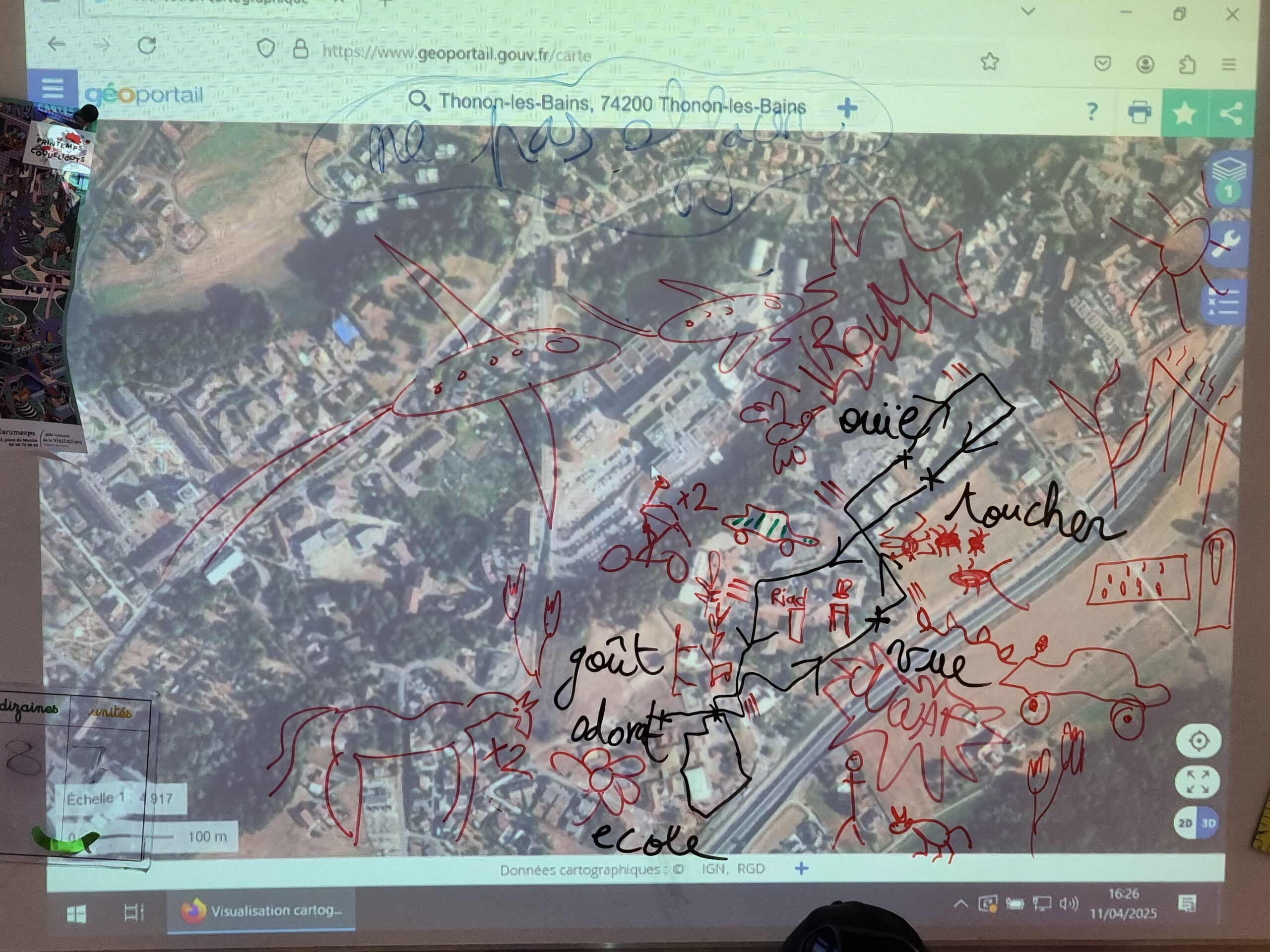 Du 7 au 24 juin 2025, les cartes sensibles réalisées par les élèves ont été exposées à la galerie de l’Étrave lors de l’exposition annuelle des PCT (Parcours Culturels Thononais).