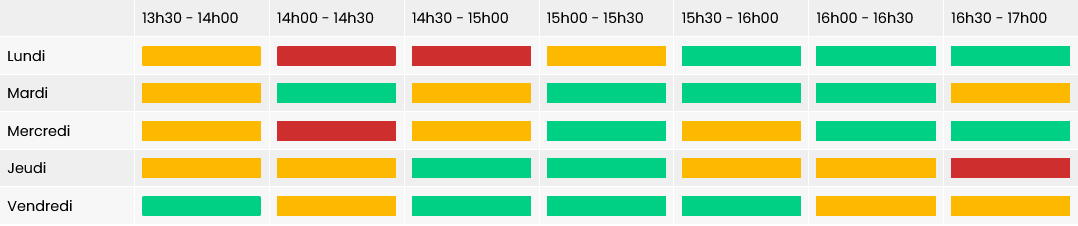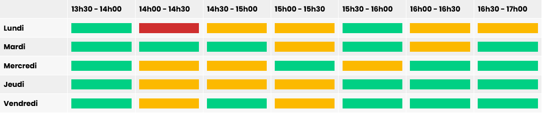 Découvrez ci-dessous le taux moyen de fréquentation à l’accueil du CCAS. Choisissez, si vous le pouvez, un créneau à faible affluence afin de limiter votre attente :