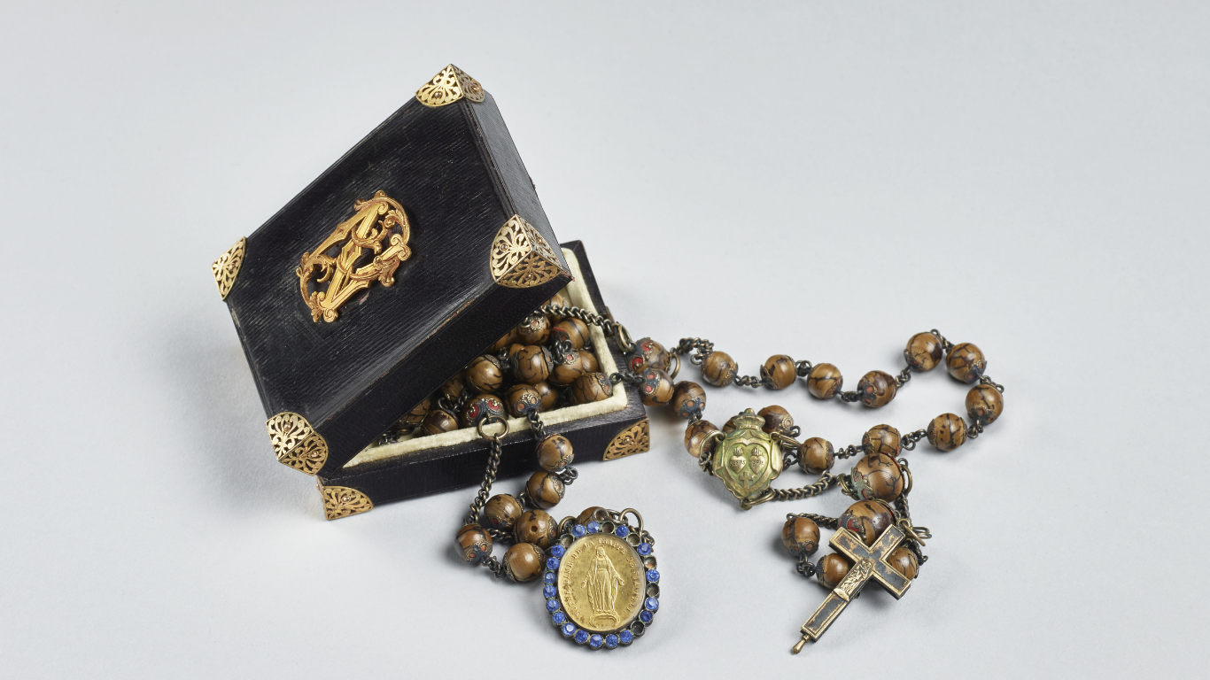 Le parcours s’ouvre sur les objets personnels de l’Impératrice Eugénie, témoignant de son élégance et de son rôle central à la cour (miniature sur ivoire, chapelet, livre de prières, ou encore flacon à sels orné de la couronne impériale, emblématique des codes de distinction féminine sous le Second Empire).