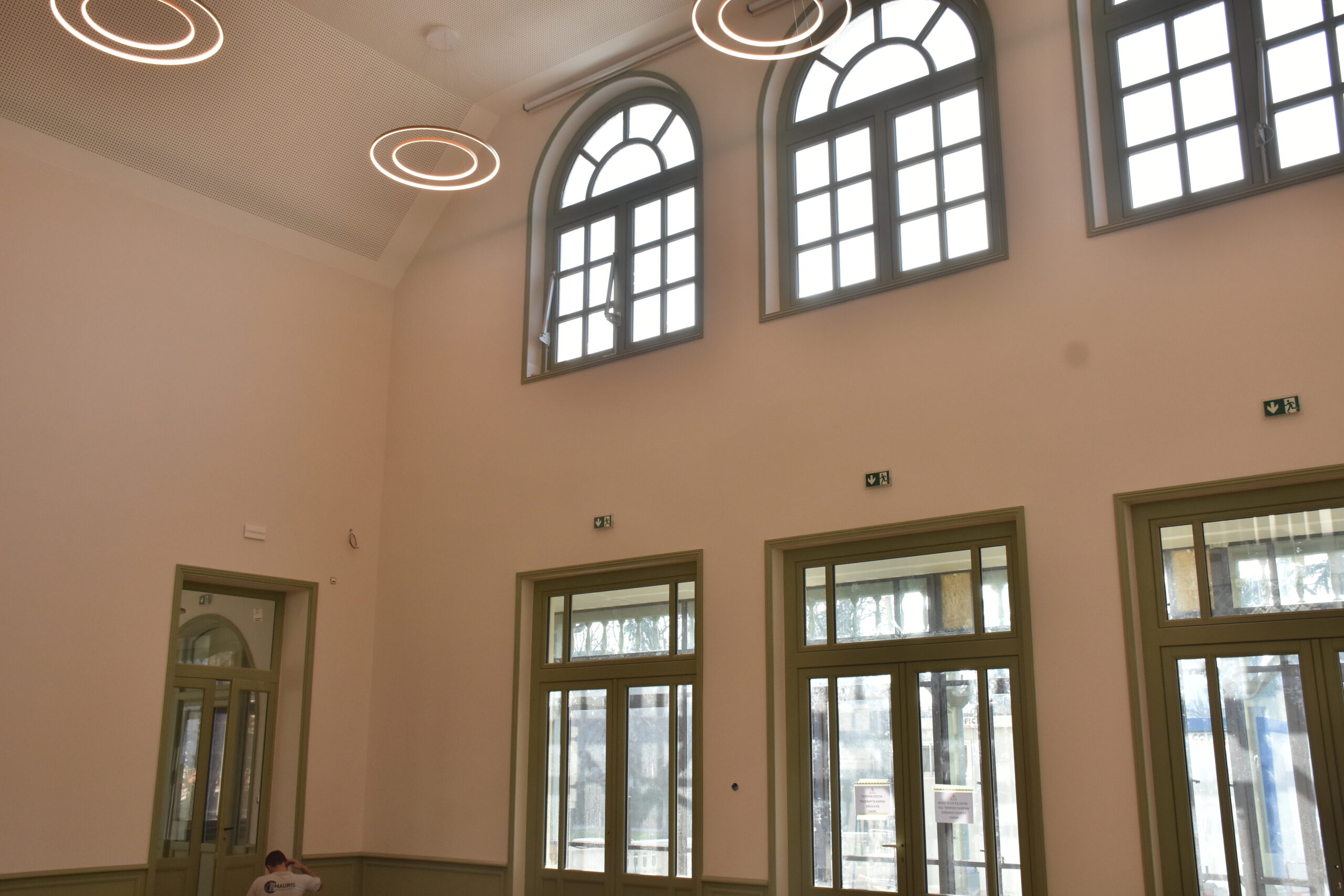La grande salle retrouvera sa double hauteur grâce à la dépose du plancher intermédiaire. La partie haute de la balustrade qui ceignait la mezzanine ouverte sur cet espace sera restaurée grâce aux photographies d’archives. La partie basse, qui a disparu ; sera reconstituée. Les aménagements intérieurs retrouveront l’esprit de l’aménagement historique, tout en restant sobres pour ne pas créer de pastiche.