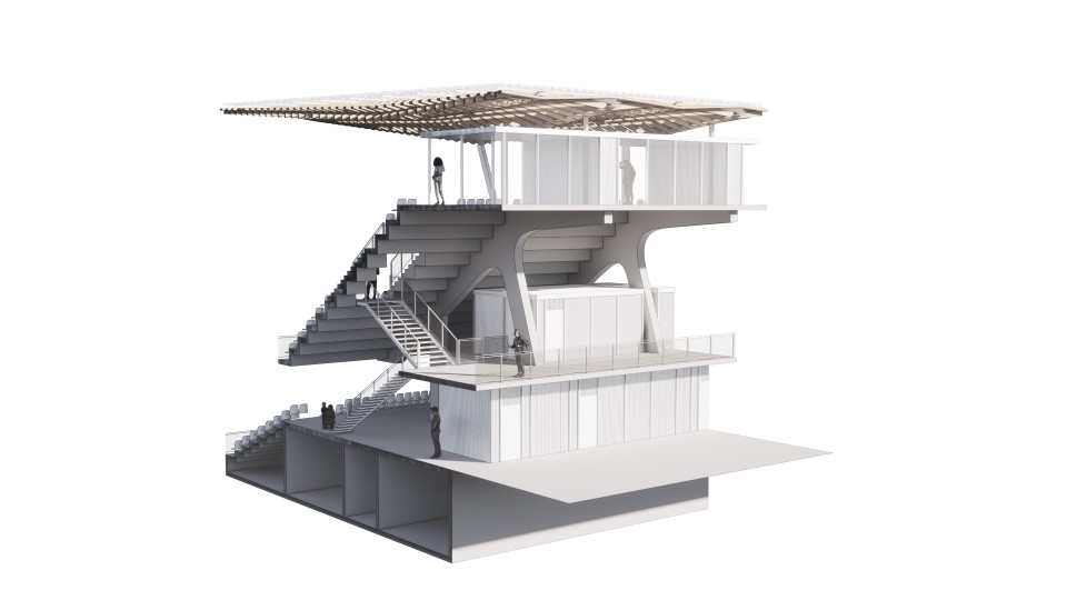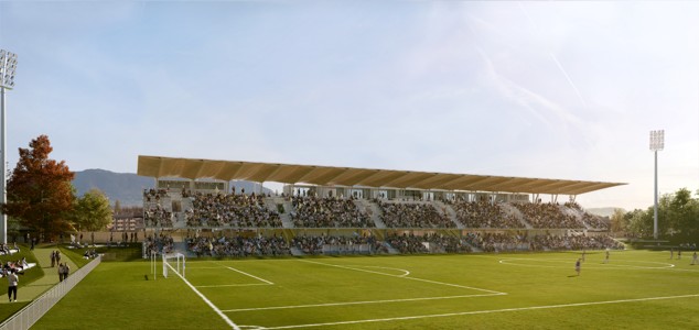 Avec un terrain abaissé, une structure de tribune aérienne, le futur stade se veut “poreux”.